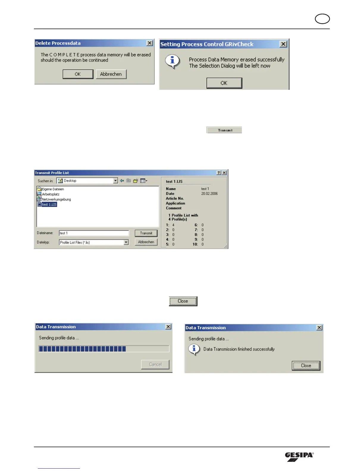 pressed, (illustration 21). Here, the profile lists file to be transferred can be selected from the respective