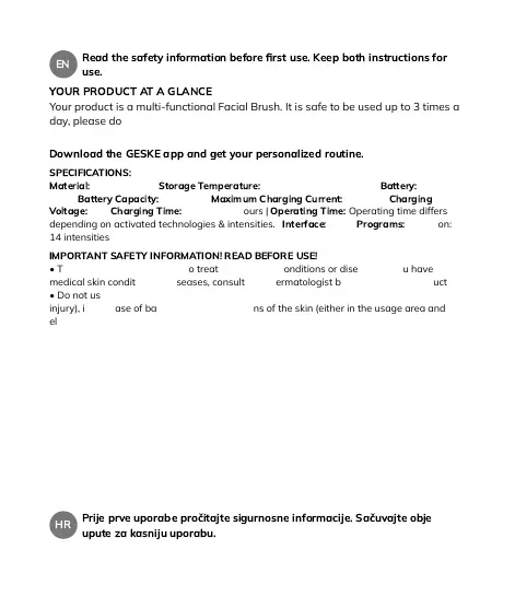 • The product is intended for cosmetic use on the face. GESKE assumes no liability for