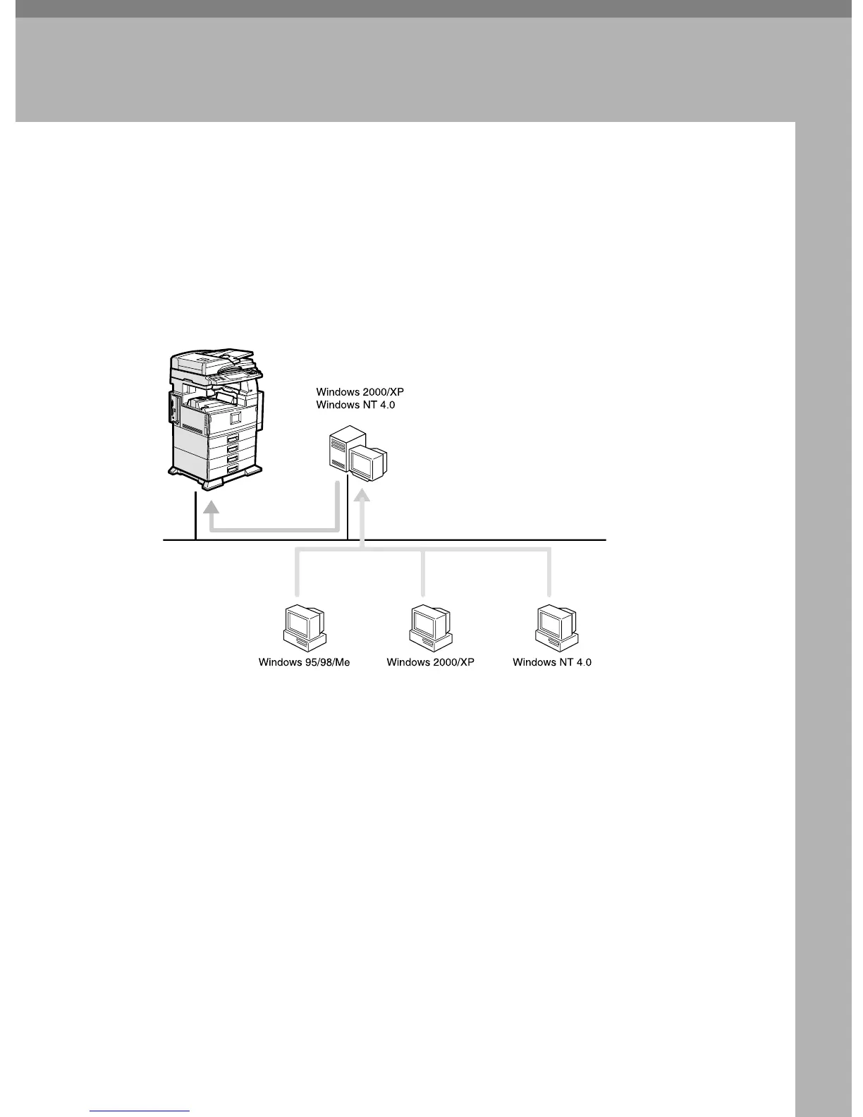 To set up the machine as a network printer in Windows 95/98/Me, Windows