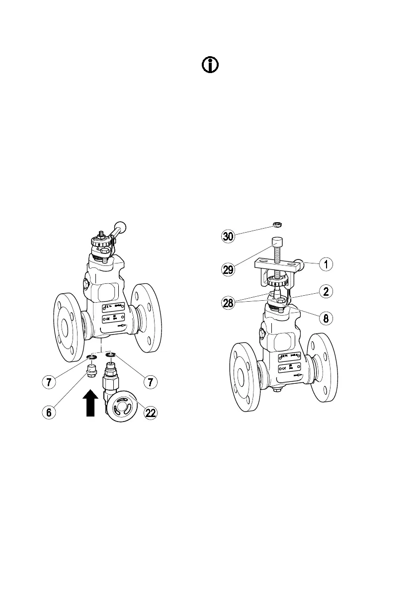 Remove the two stuffing box screws (28).