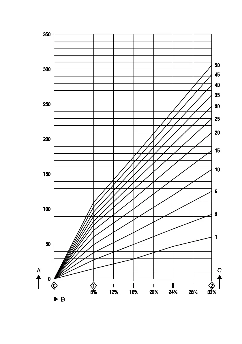 Flow diagram for DN 15 to DN 32, capacity range up to 310 kg/h