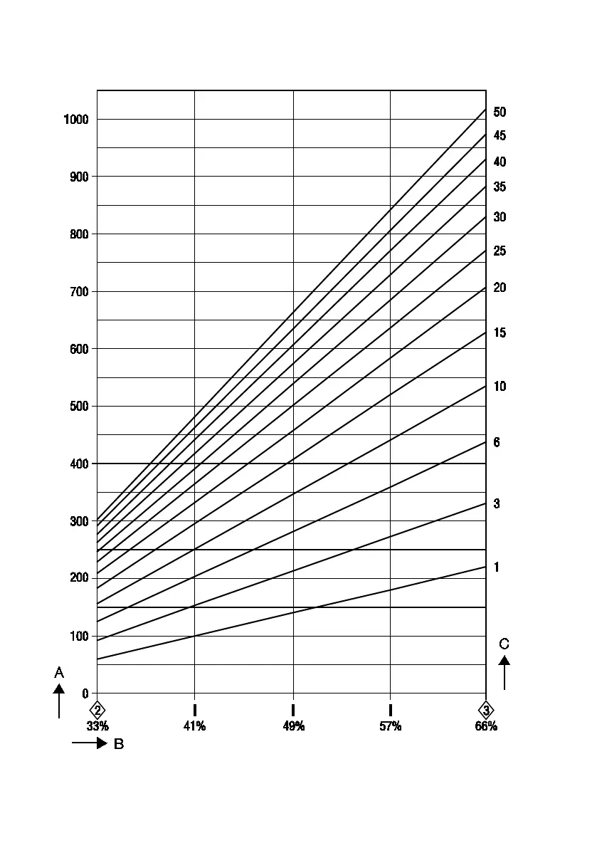 Flow diagram for DN 15 to DN 32, capacity range up to 1,020 kg/h