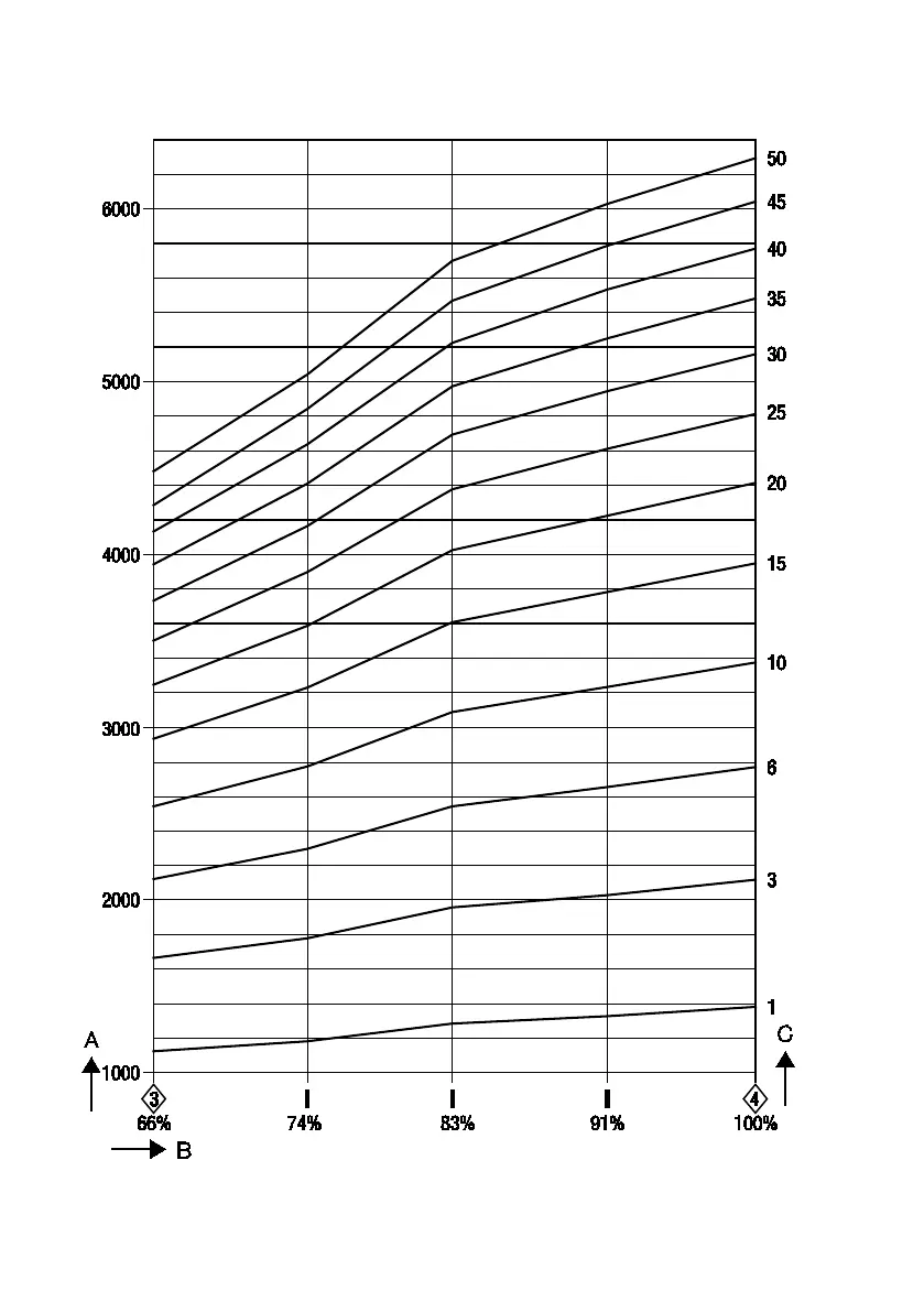 Flow diagram for DN 40 and DN 50, capacity range up to 6,300 kg/h