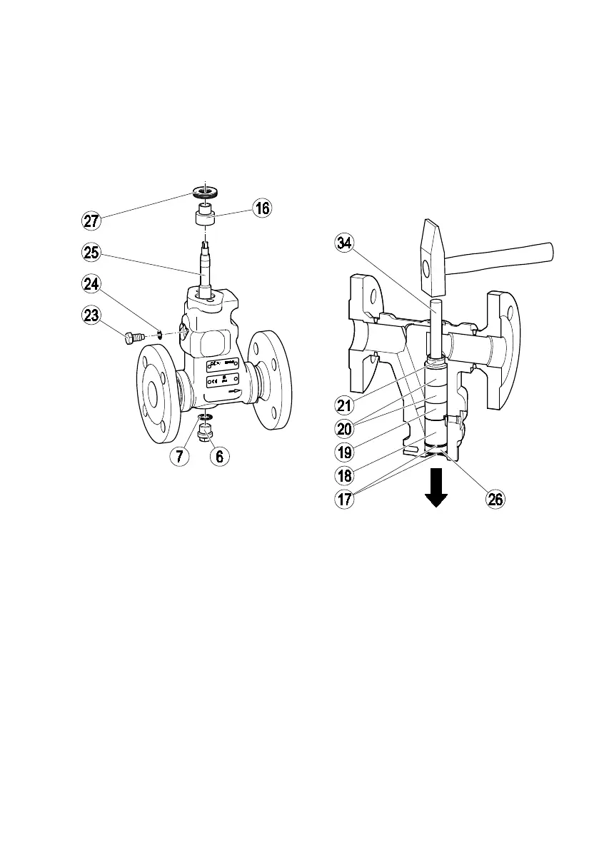 Using a brass punch (34), knock the following