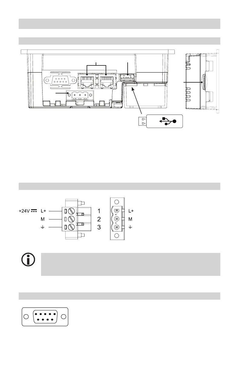 Connection for 24 V DC supply voltage - pin assignment