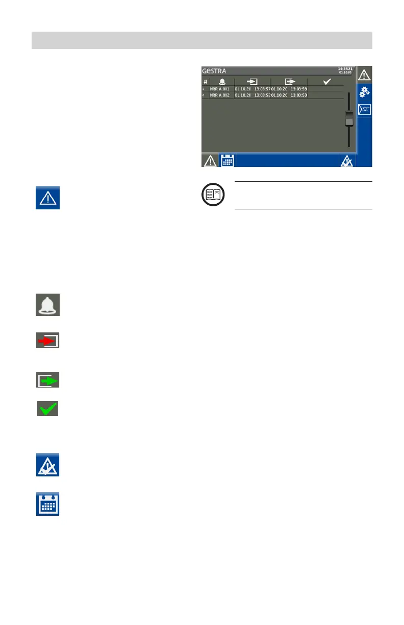 Alarms and fault indications are entered in