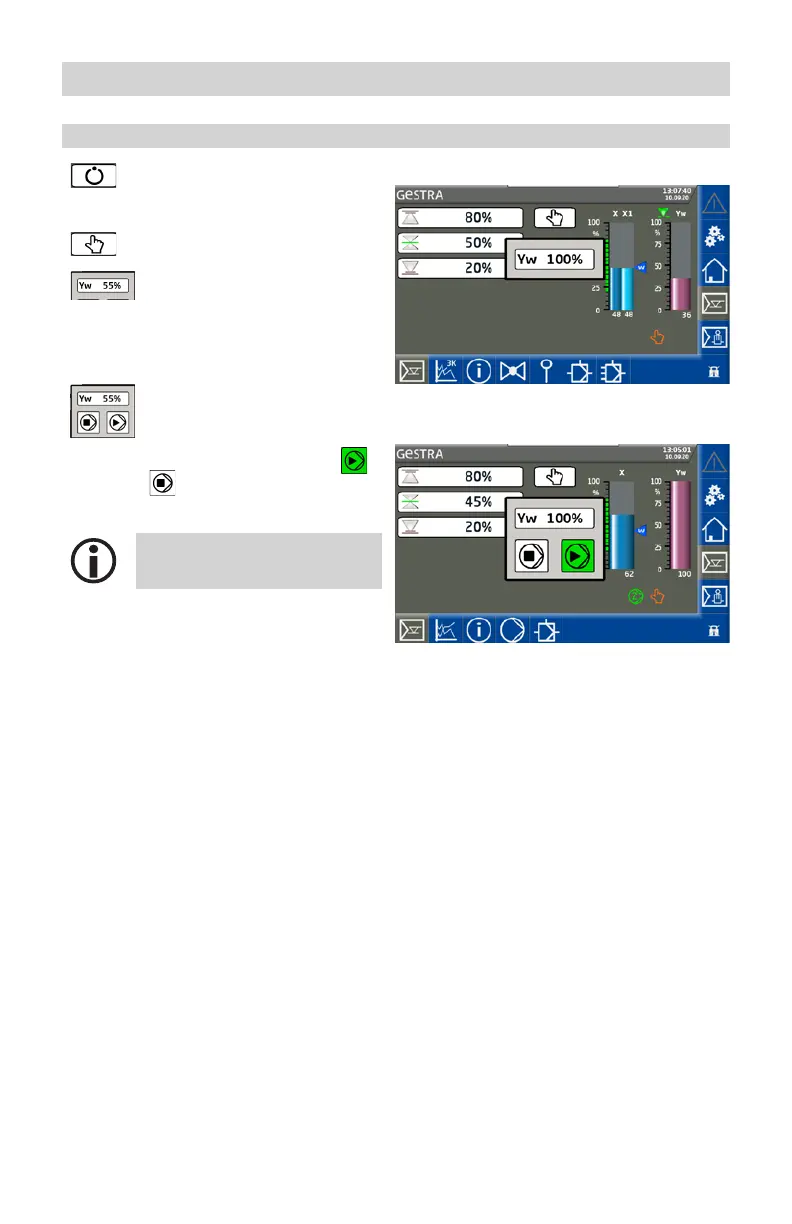 Valve control in manual mode (example)