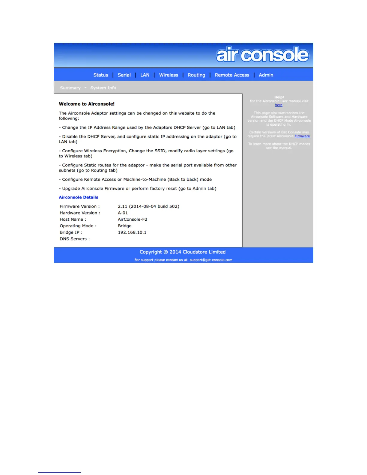 changed as the Get Console application will dynamically reconfigure Airconsole’s serial