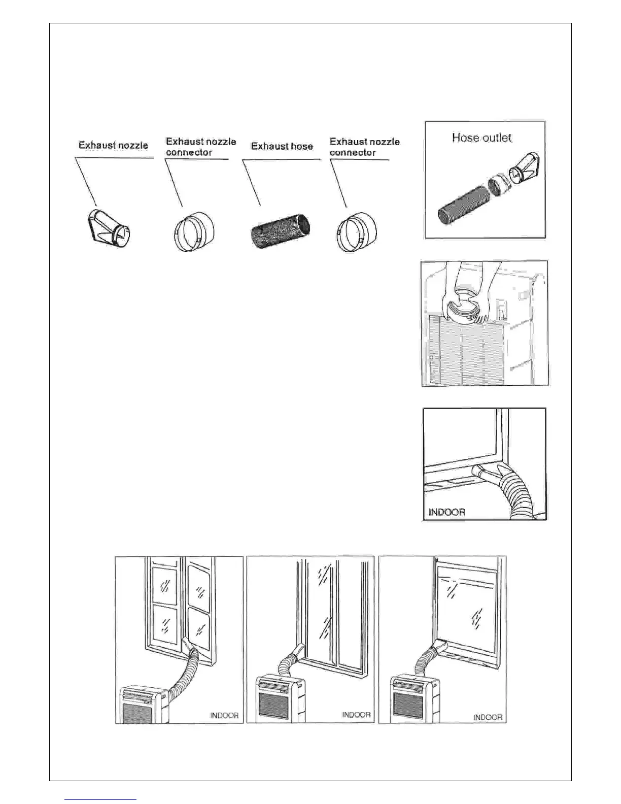 end of the hose and the exhaust duct connector to the other end of the hose.