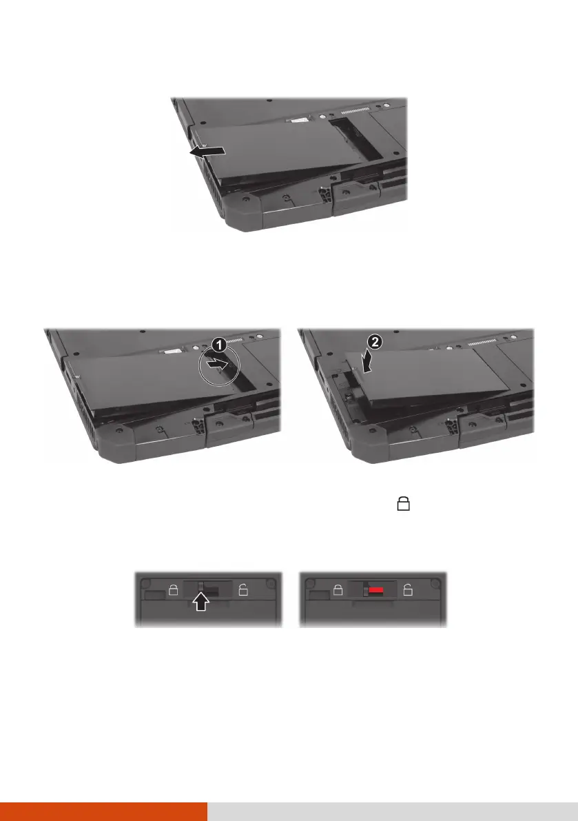 7. Slide the battery latch toward the locked position ( ).
