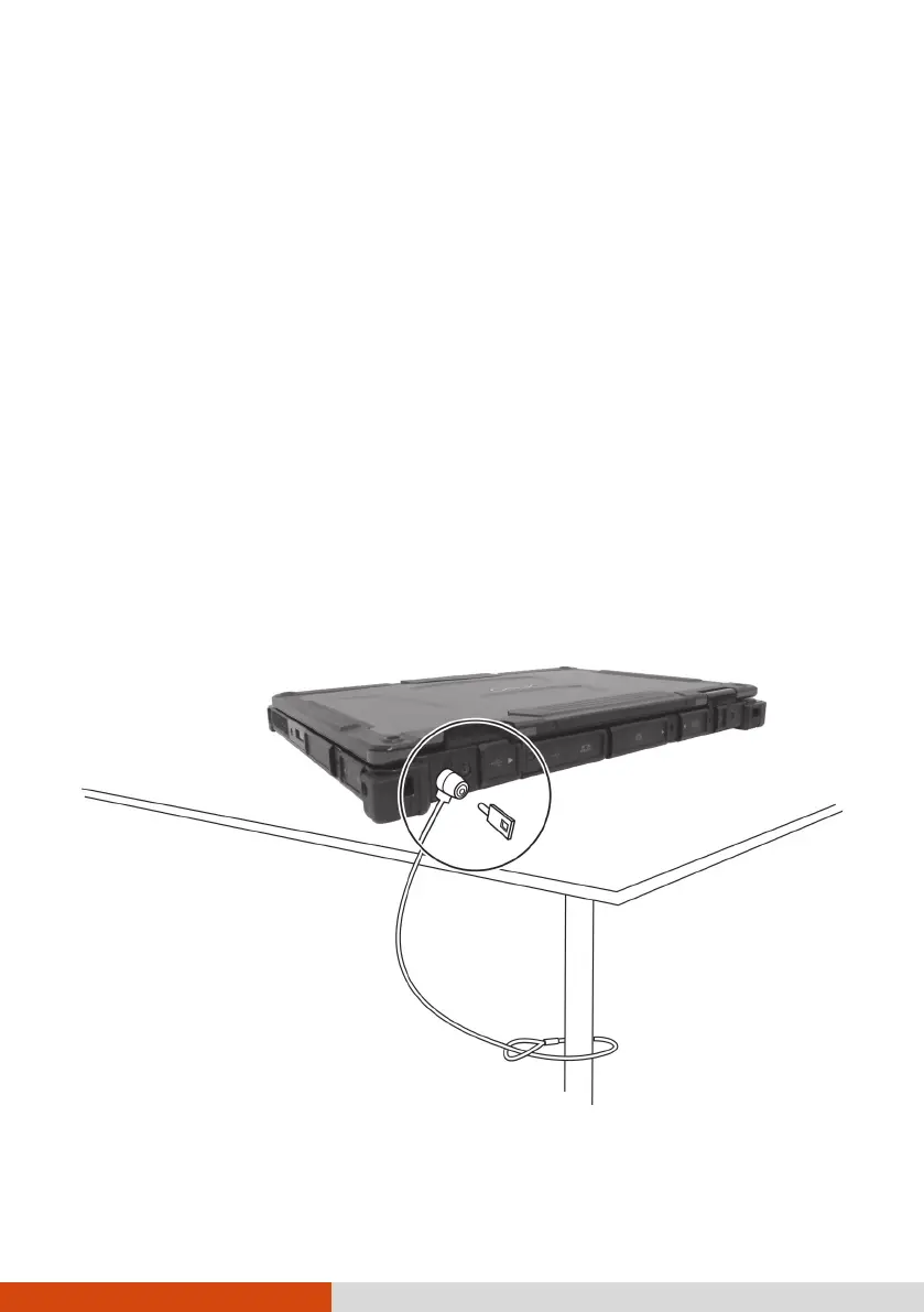 table. Insert the lock to the Kensington lock hole and turn the key to secure