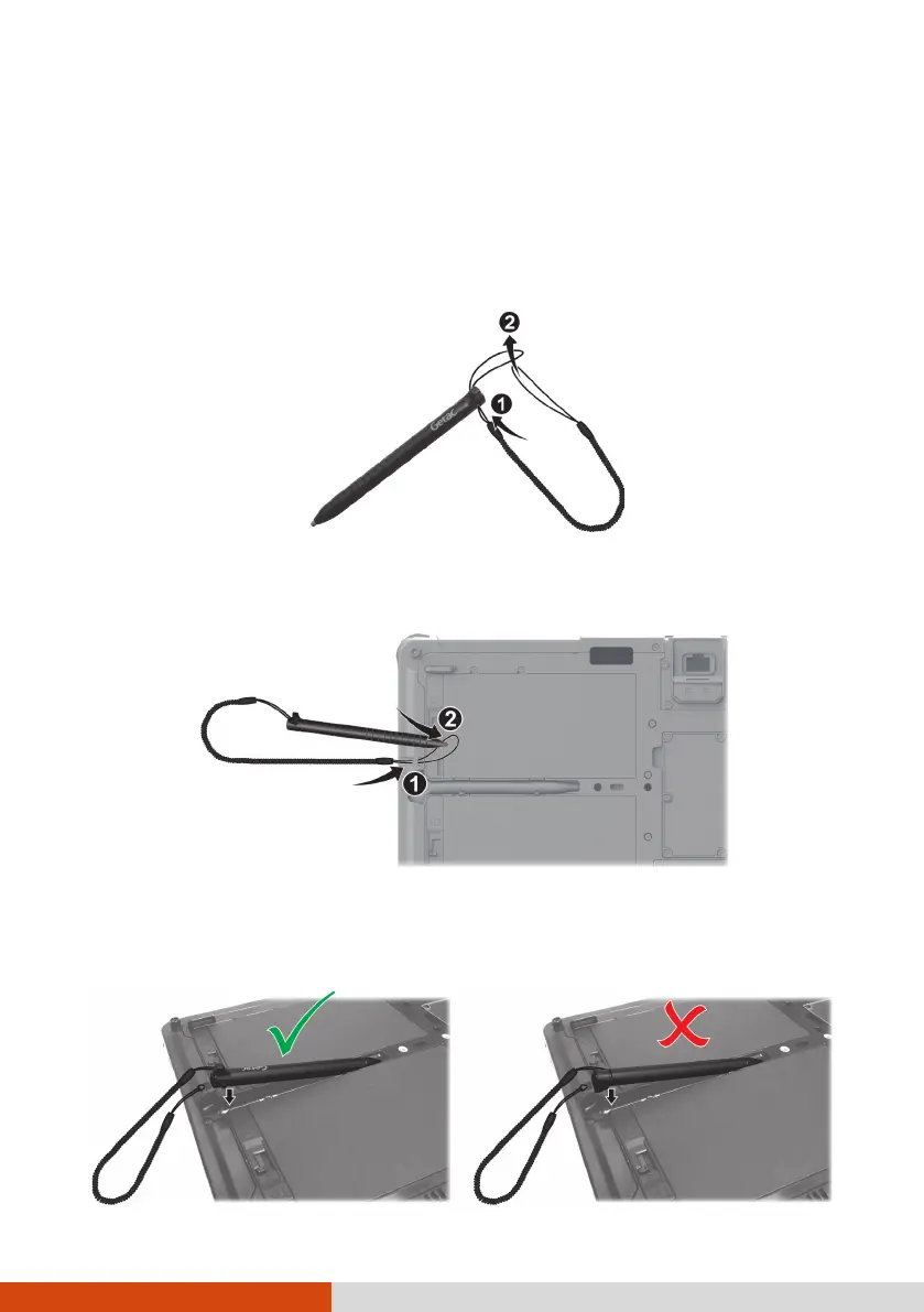 2. Insert the other loop to the tether hole on the Tablet PC (