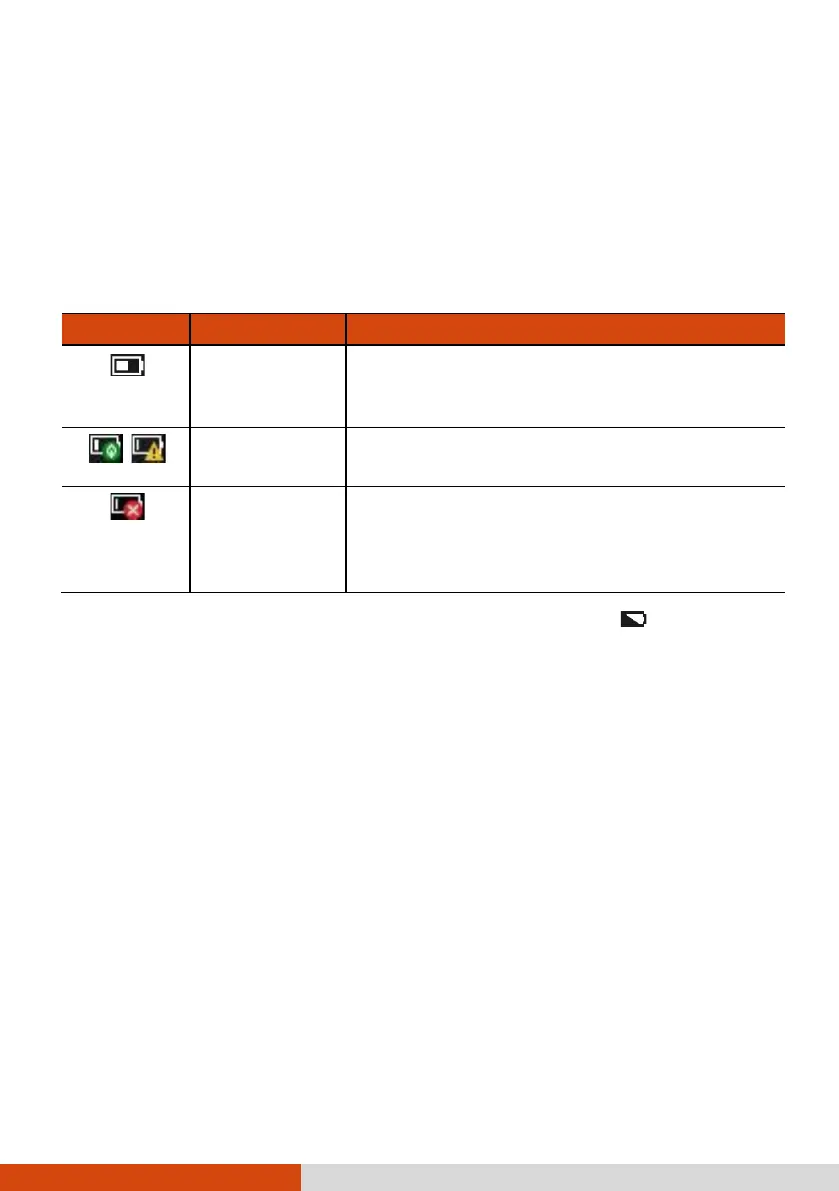 The battery icon changes appearance to display the current state of the