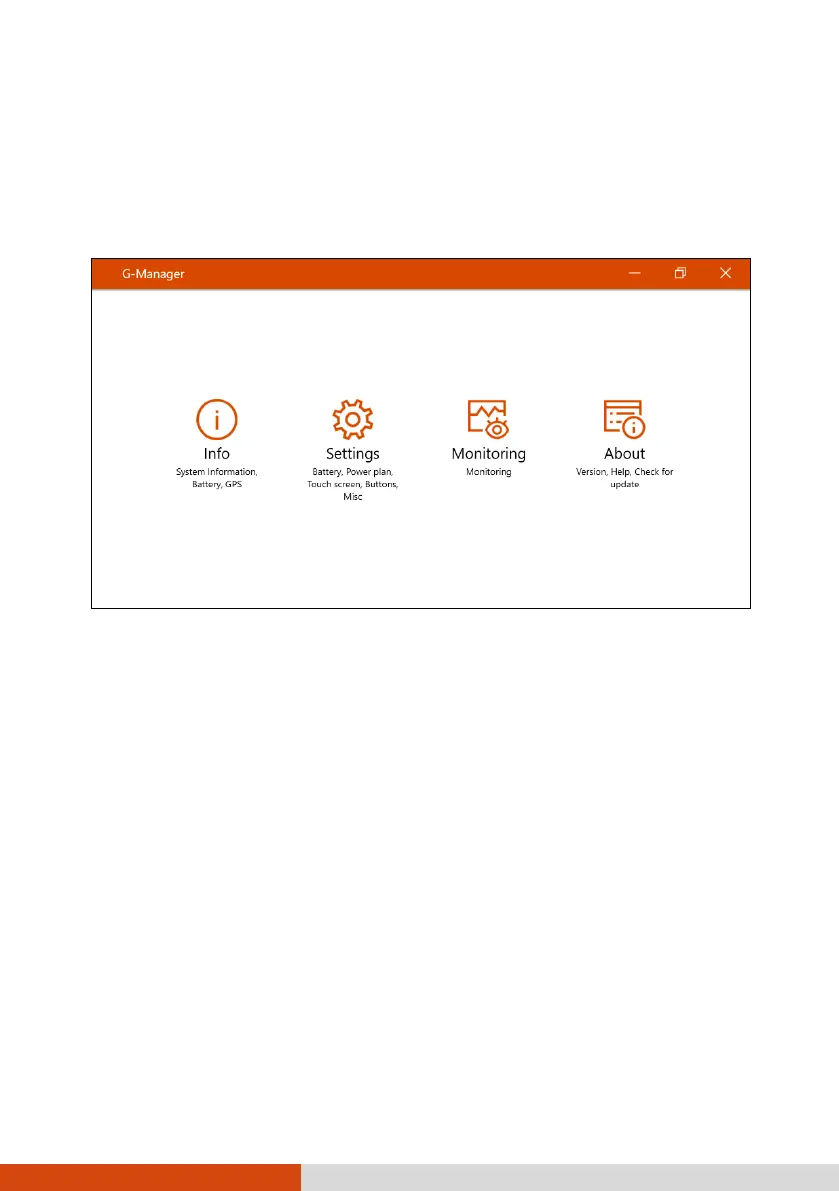 functions and features. The G-Manager home menu presents four