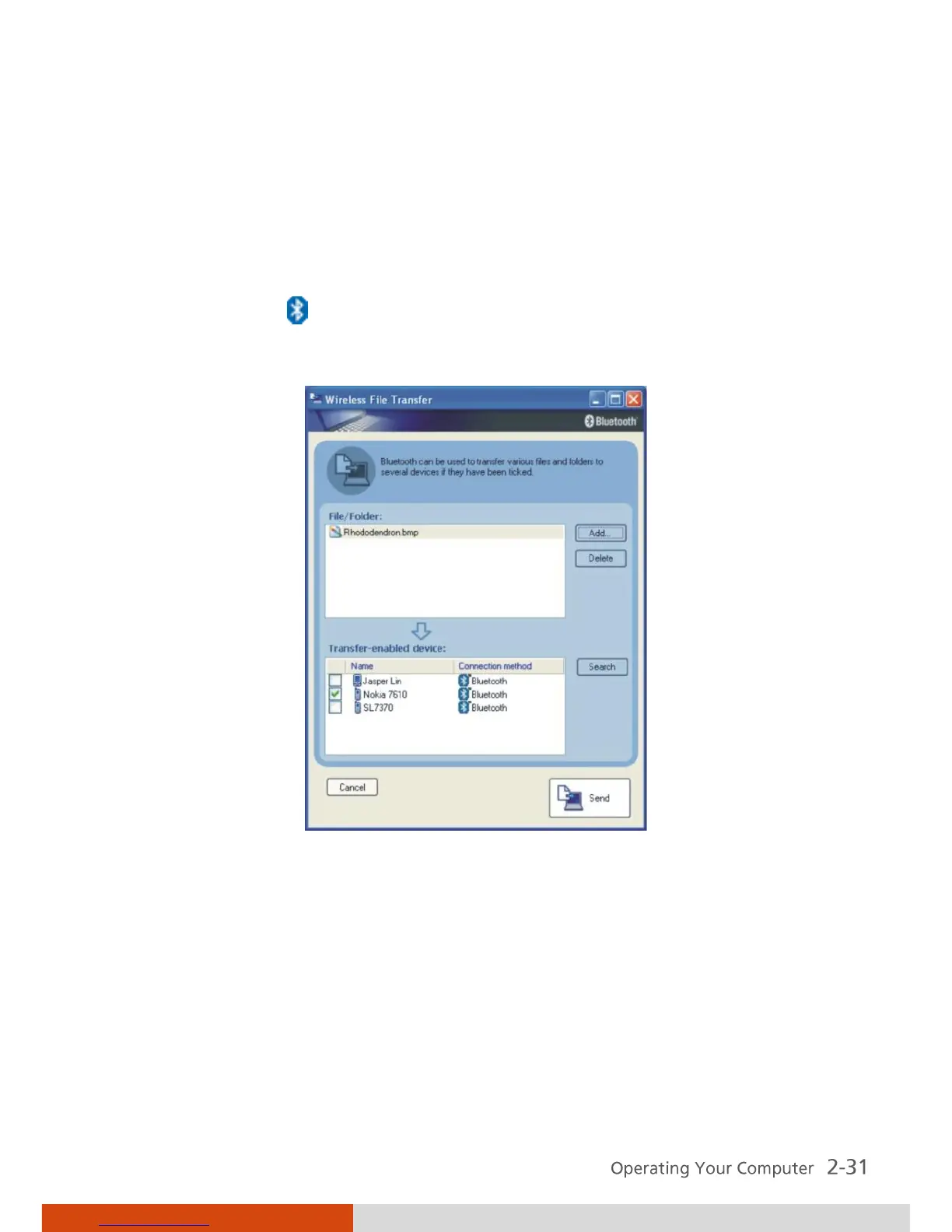 2. In the Wireless File Transfer window, click Add to browse for the file to