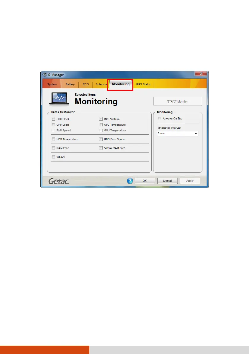 The Monitoring tab allows you to configure the monitoring function of G-Manager.