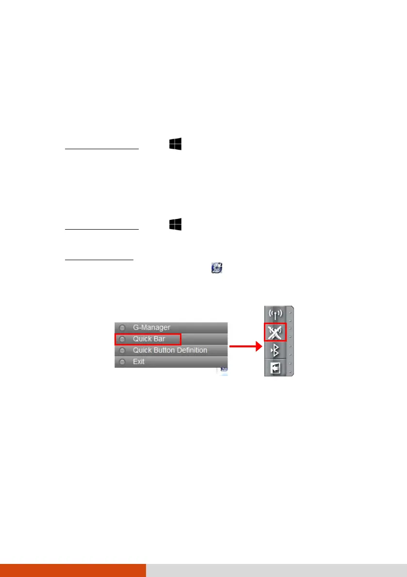 • For Windows 7: Use Getac Quick Bar. To open Getac Quick Bar,