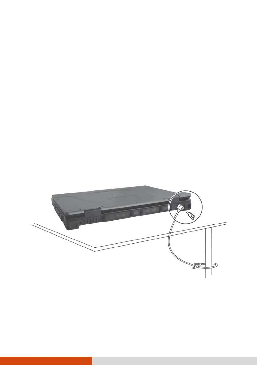 table. Insert the lock to the Kensington lock hole and turn the key to secure