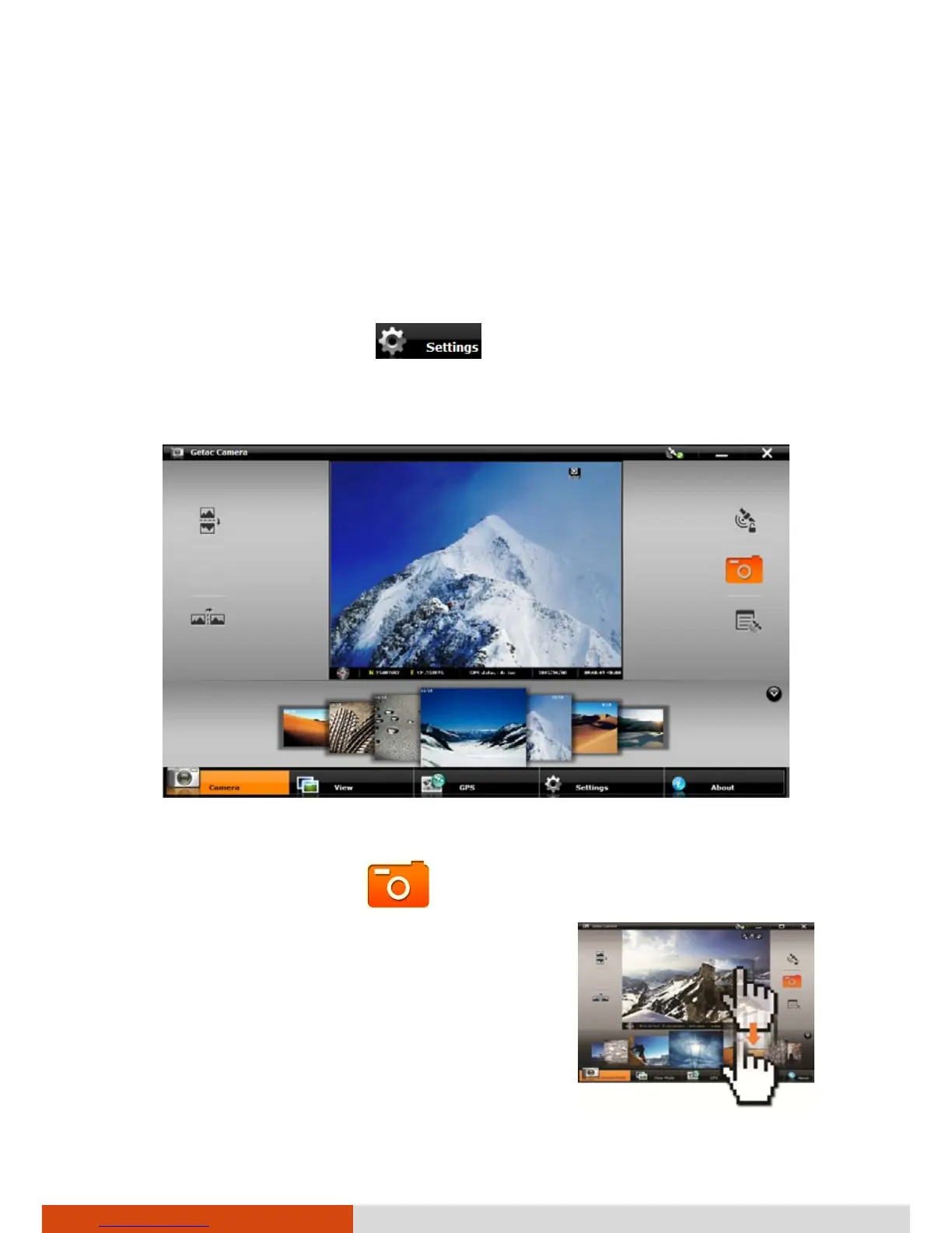 1. Start the Getac Camera program. You will be in Camera Mode.