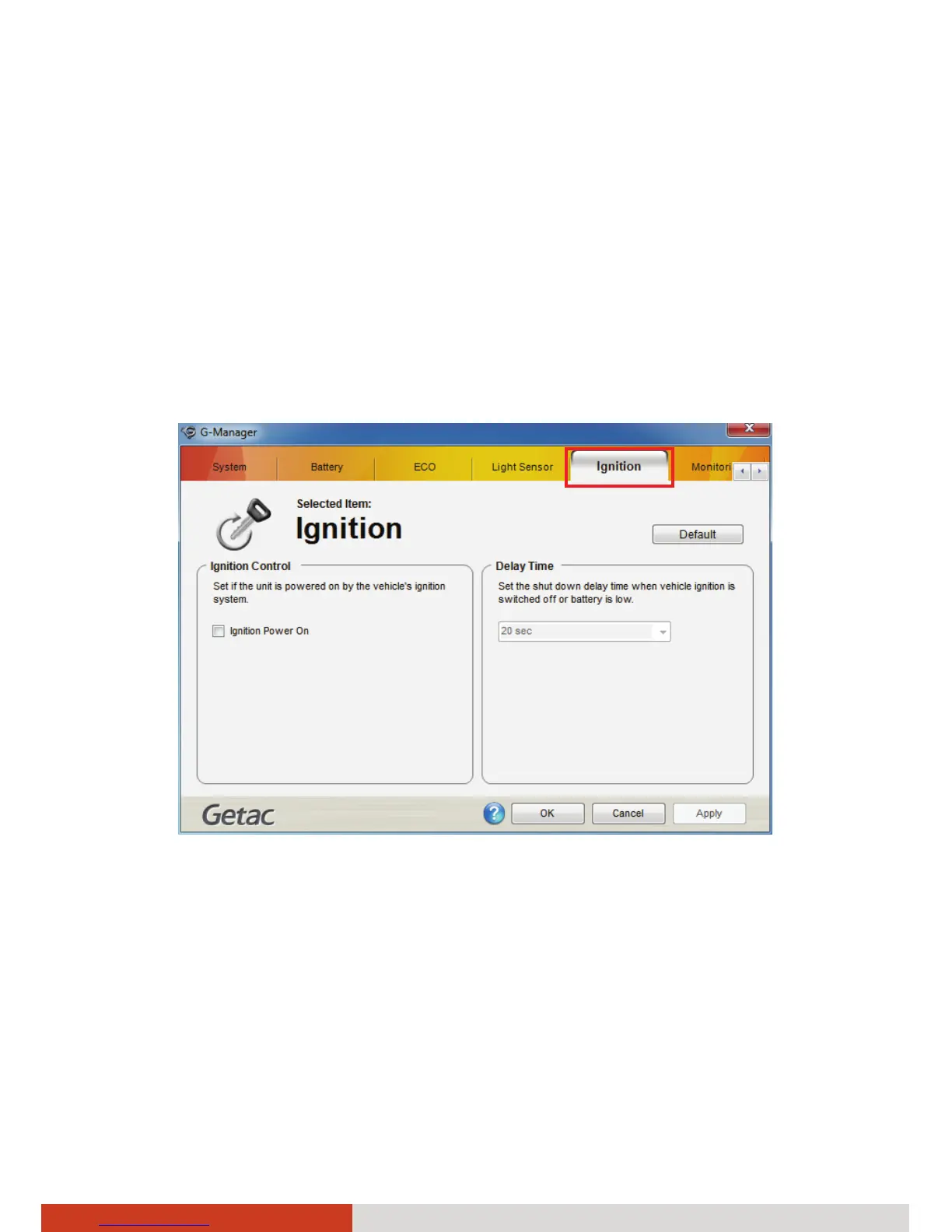 the checkbox Ignition Power On. Click Apply or OK to save the changes.