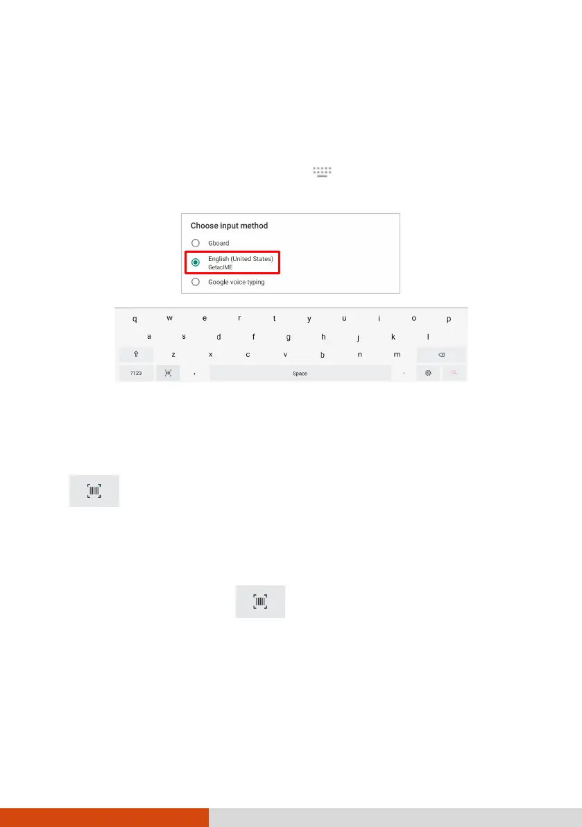 To switch to the GetacIME keyboard, tap at the bottom right of the