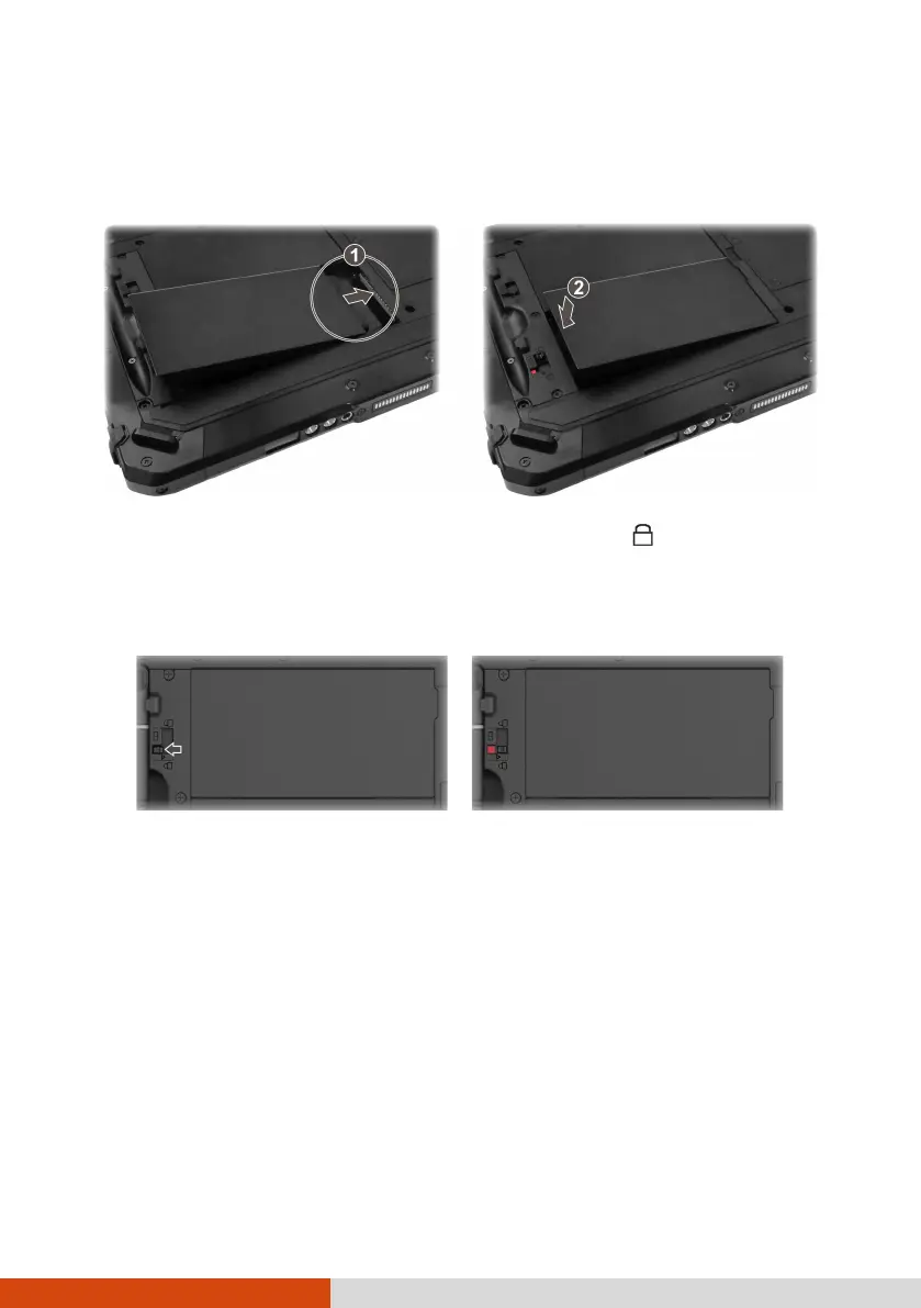 CAUTION: Make sure the battery latch is correctly locked, not revealing the