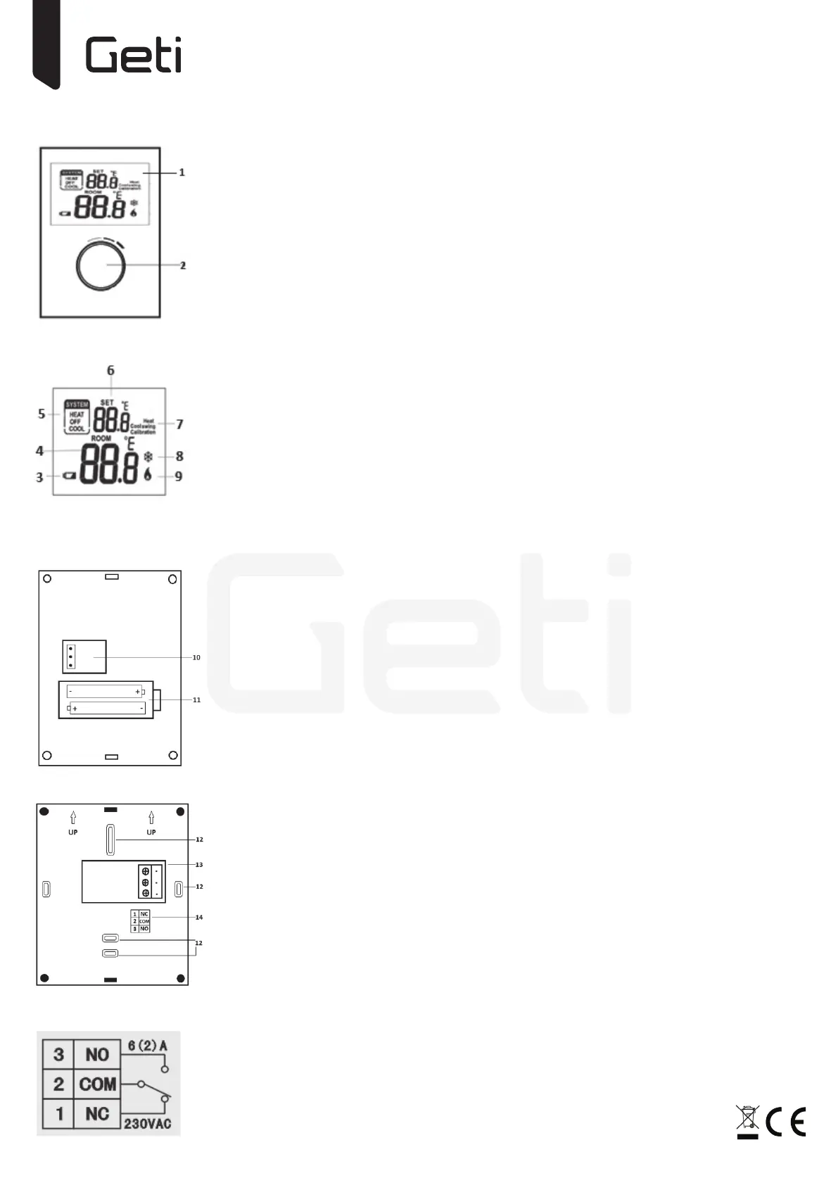 Na pripojenie k vykurovaciemu systému využite svorky č. 2 (COM) a č. 3 (NO) ter-