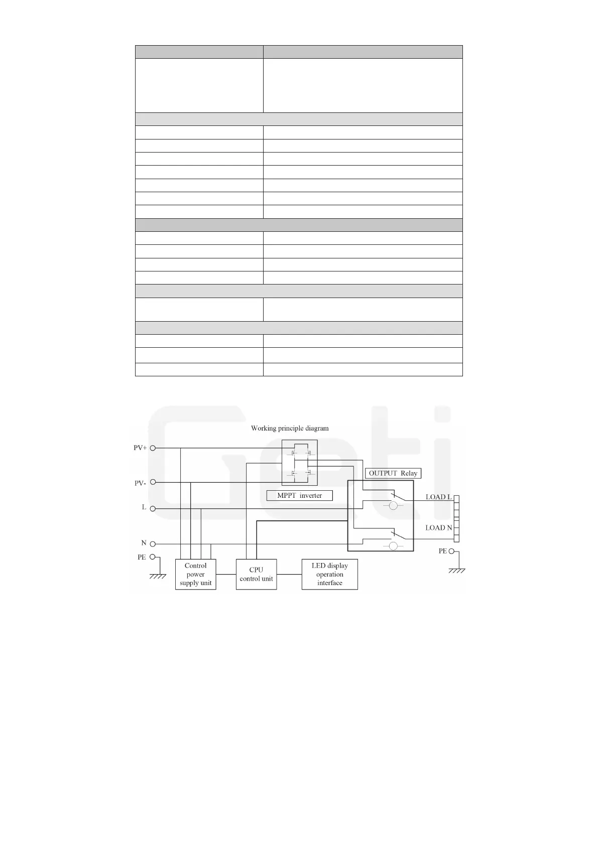 Solar input voltage 160 ~ 350V DC