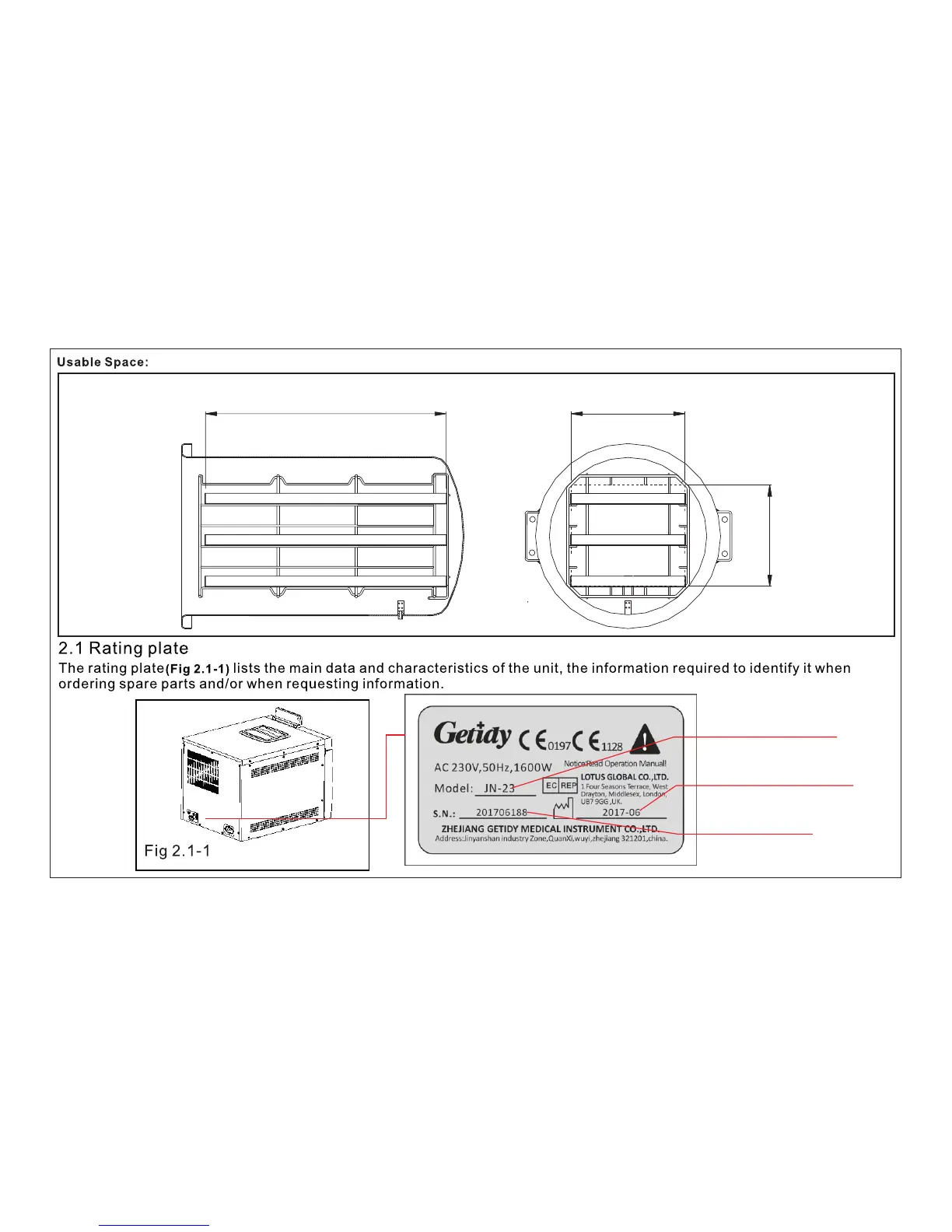 Getidy JN-23 - Rating Plate; Usable Space 23 Litres