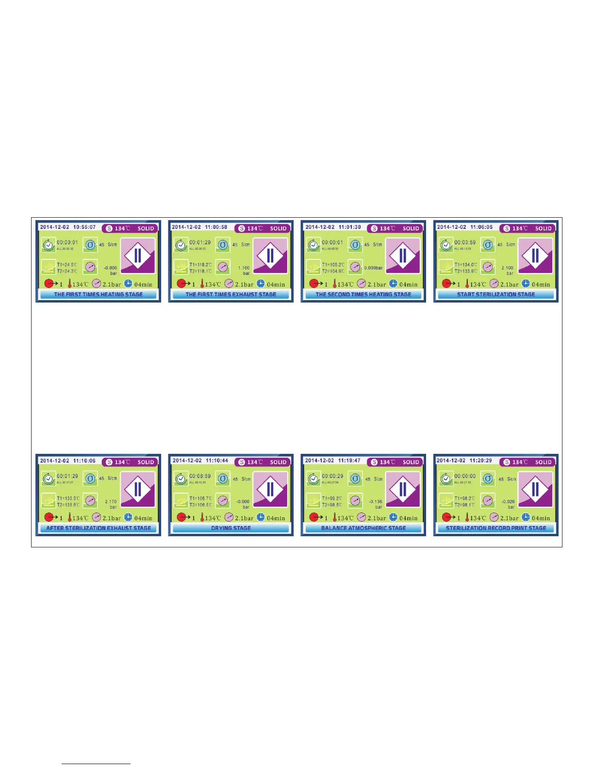 When the “sterilization time”countdown is over,the control system will open the exhaust-solenoid valve(Ev1) for exhausting untill pressure