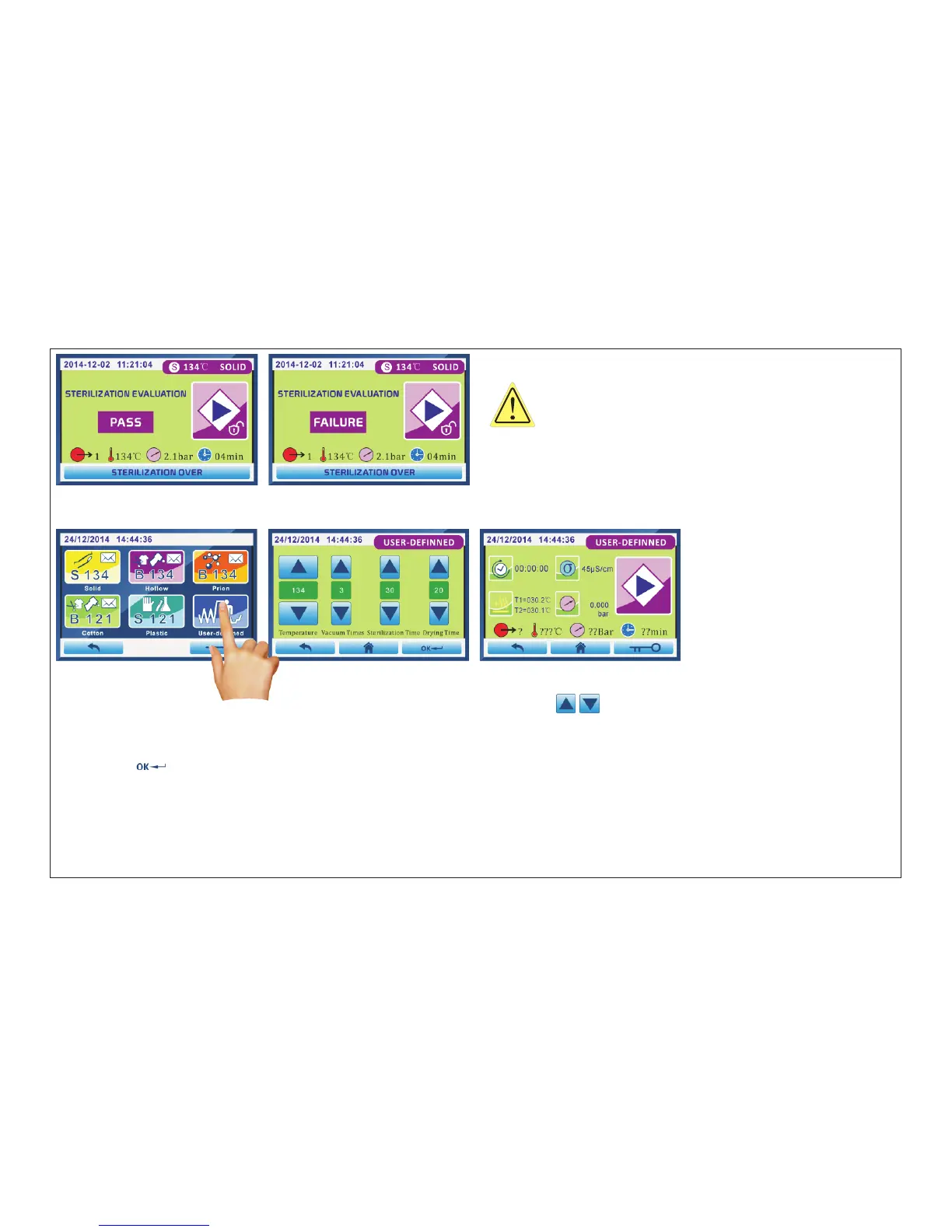 Temperature range:121℃ or 134℃. Vacuum times range: 1 or 3. Sterilization time range:4~60. Drying time:1~60.