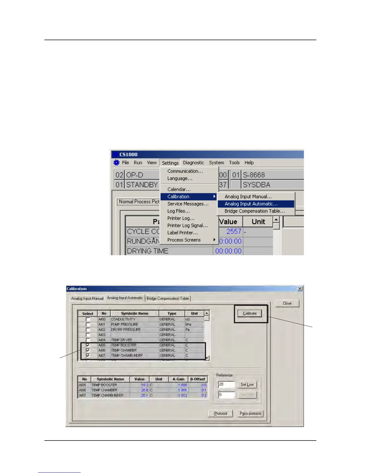 5. Start CS 1000 and choose Settings/Calibration/Analog Input Automatic...