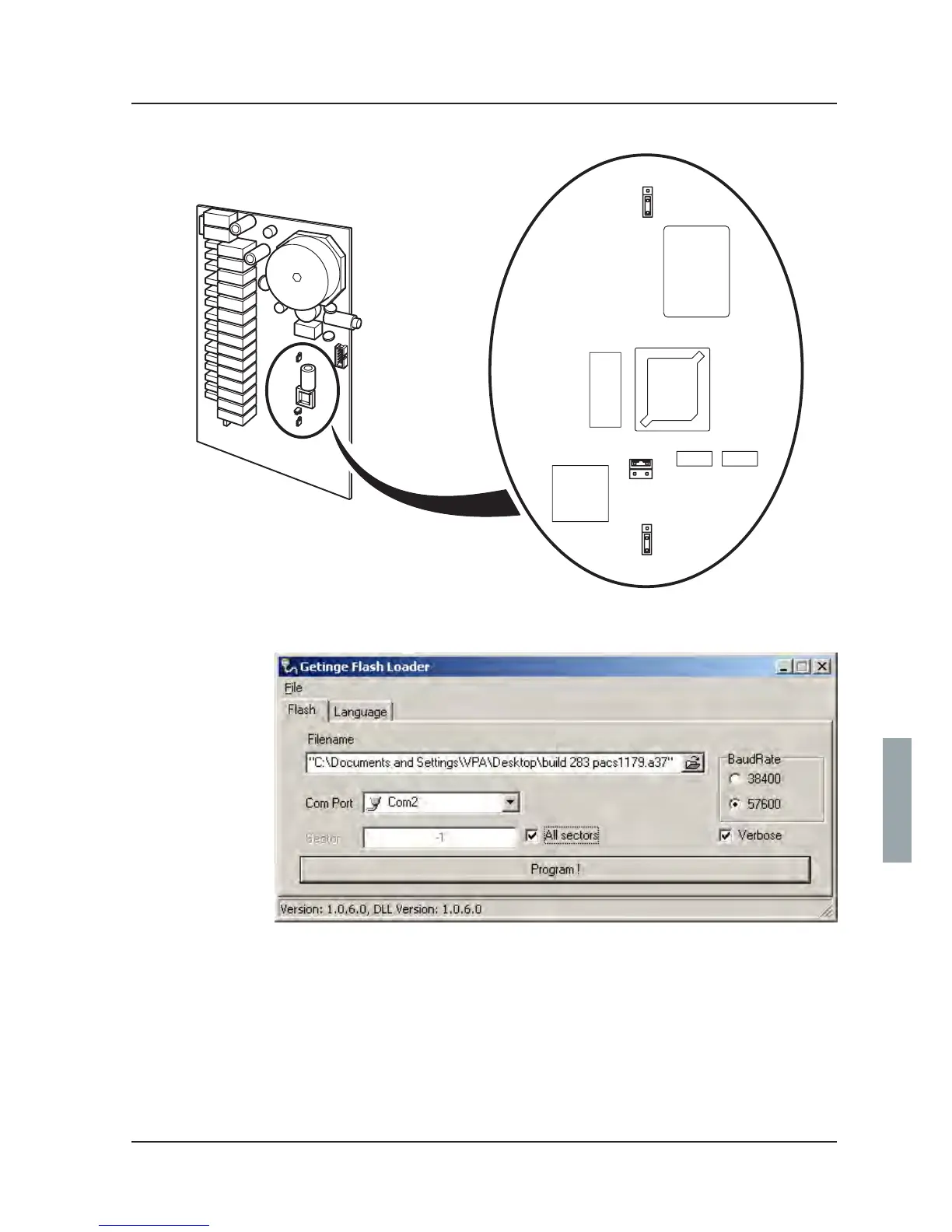 6. Change the jumper (X29) on the board for the PACS 300 control system from Normal to Test.