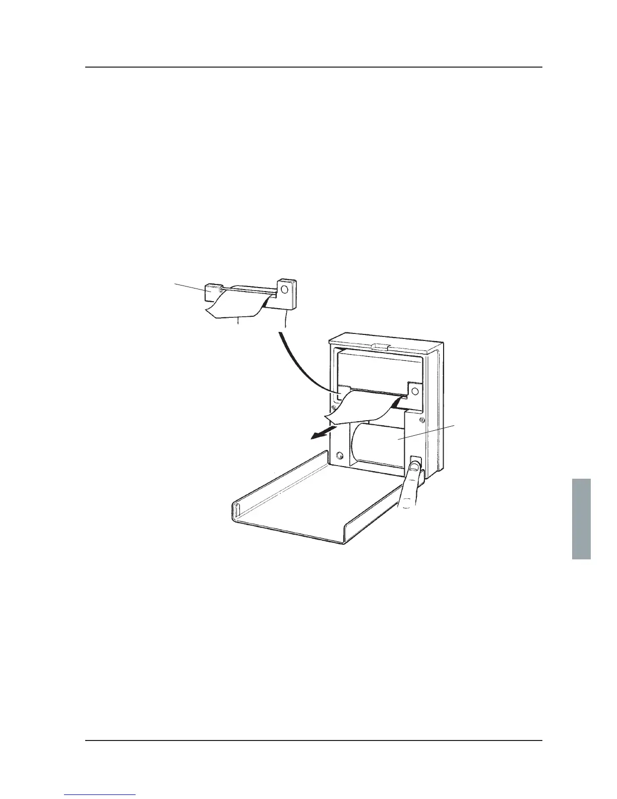 • Insert the point of the paper into the opening of the print mechanism and press the green button
