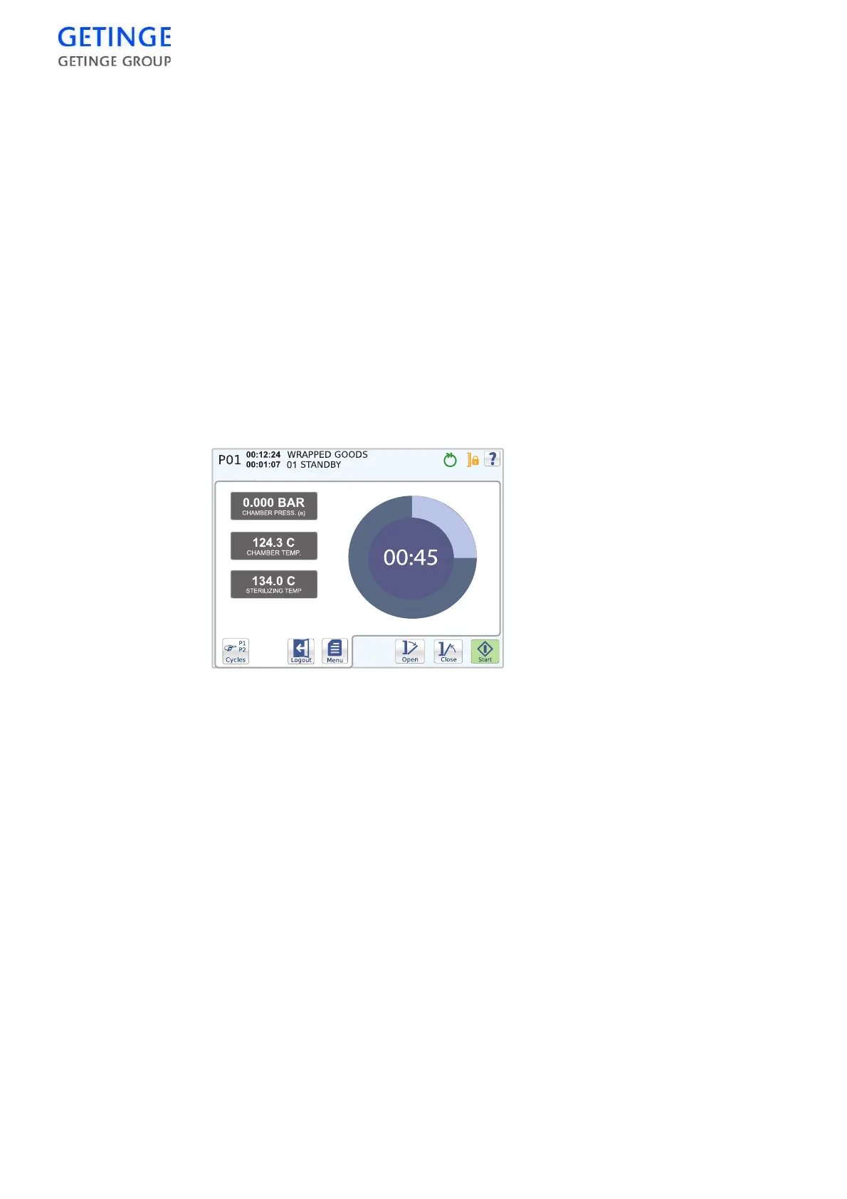The start screen displays two cycle parameters, as well as a bar graph