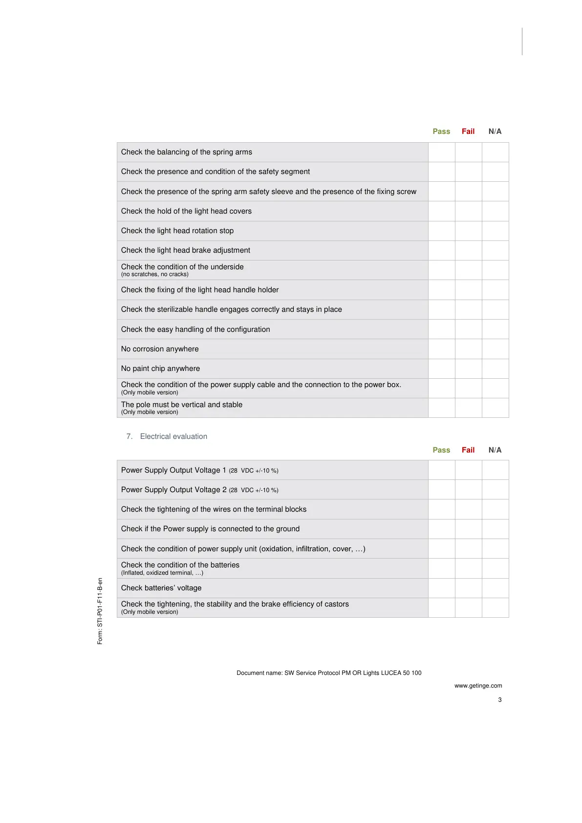 SW Service Protocol PM OR Lights LUCEA 50 100-A