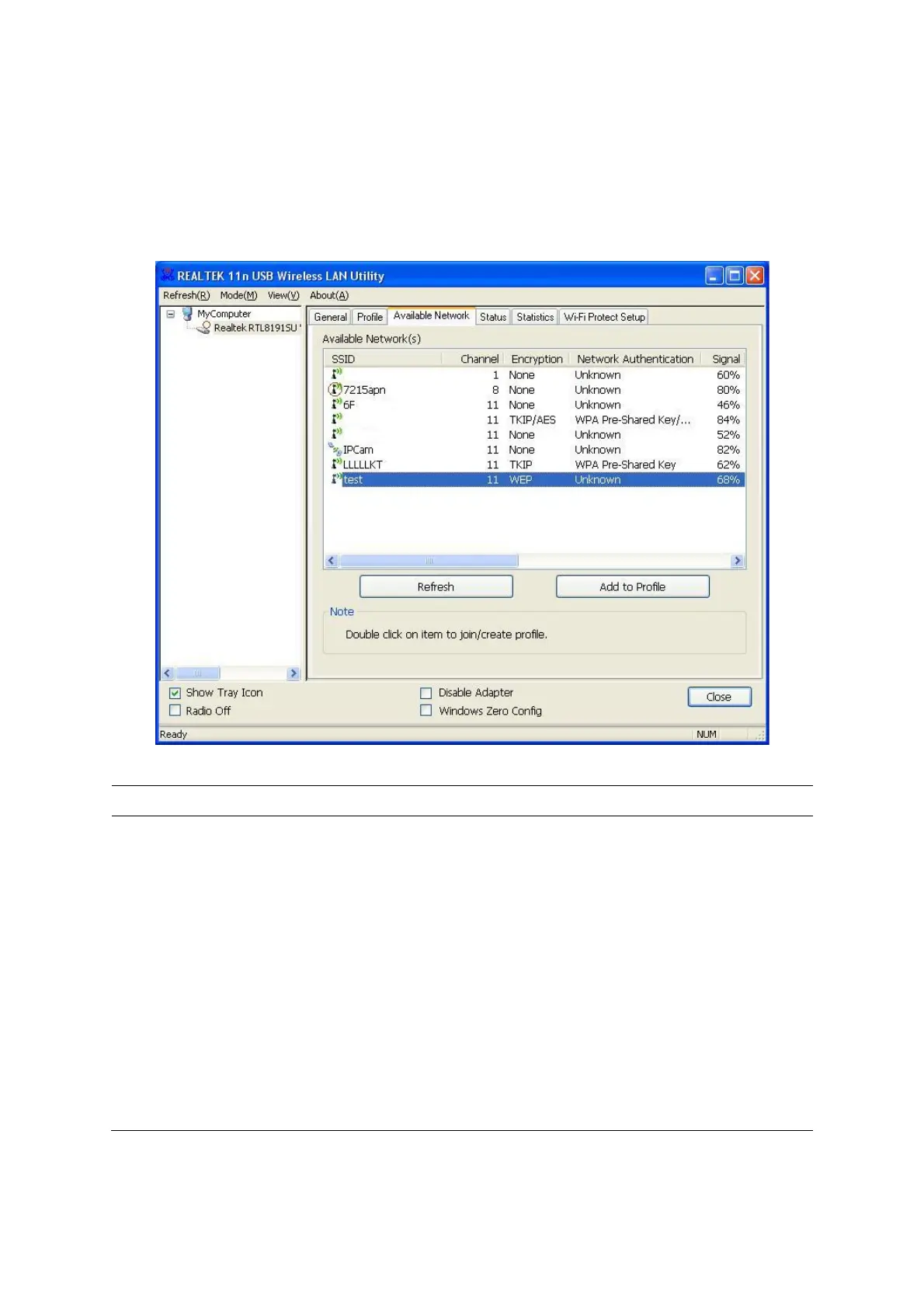 Available Network(s) This list shows all information of the available wireless networks