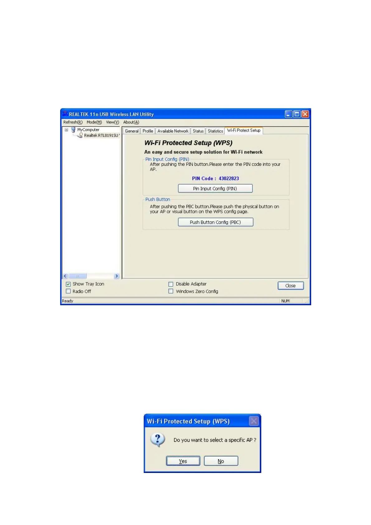 computer, click ‘Yes’ to select a specific wireless access point or click ‘No’ to start PIN