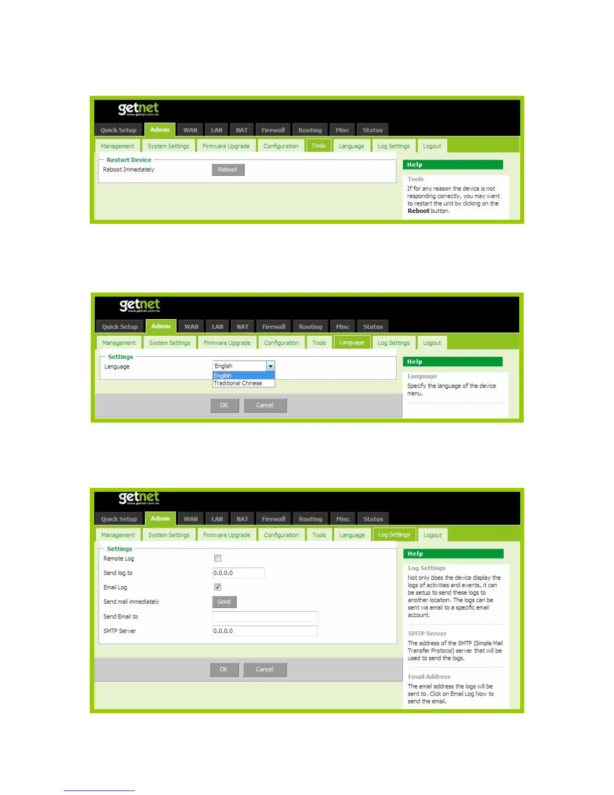 Email Address: The email address the logs will be sent to. Click Email Log to send the email.