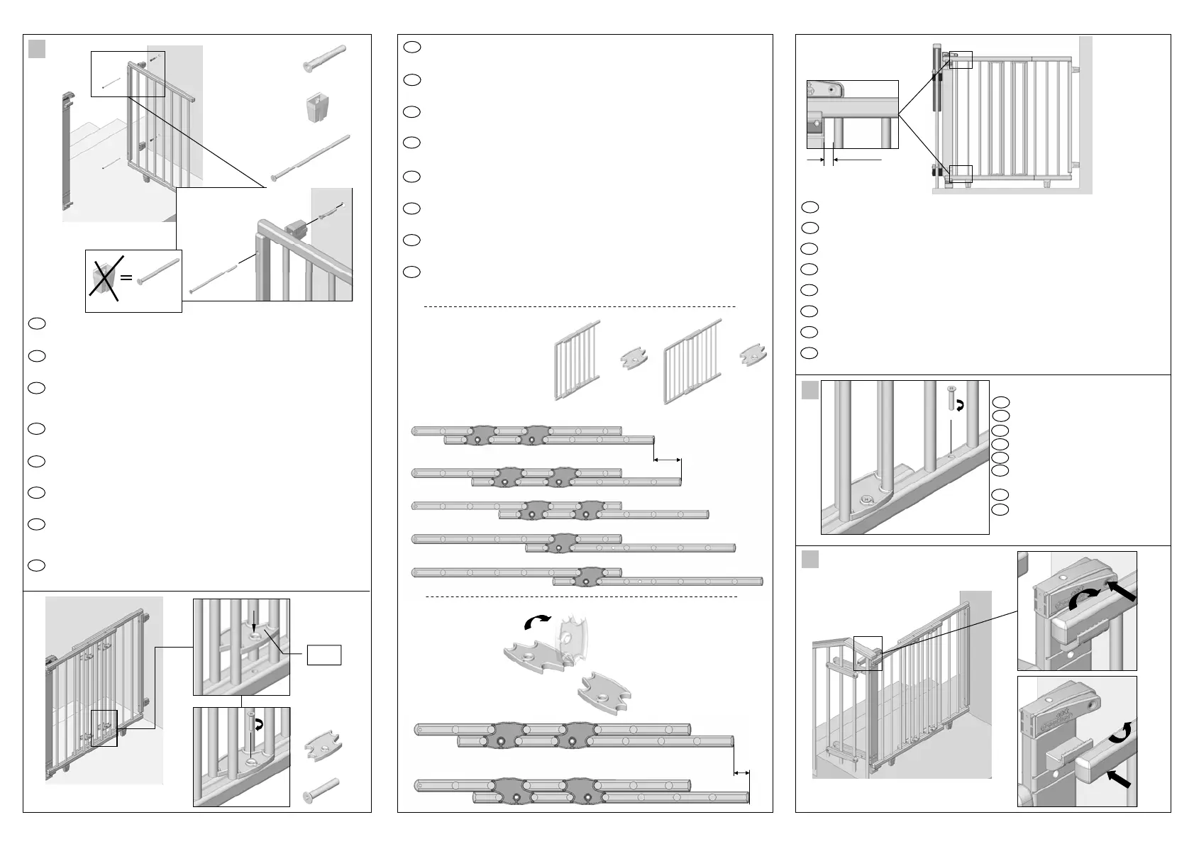 in sections of 7.3 cm “h“. By turning the adjusting clamps “i“ the safety gate can be adjusted by