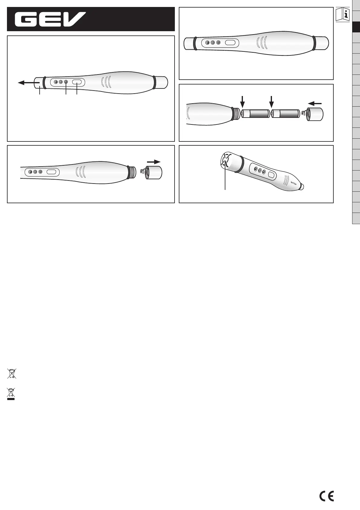 Replacez ensuite impérativement le capuchon. Ouvrez le compartiment à piles (fi g. B) et insérez-y deux piles alcalines (2piles AA 1,5V) (fi g. C) en veillant