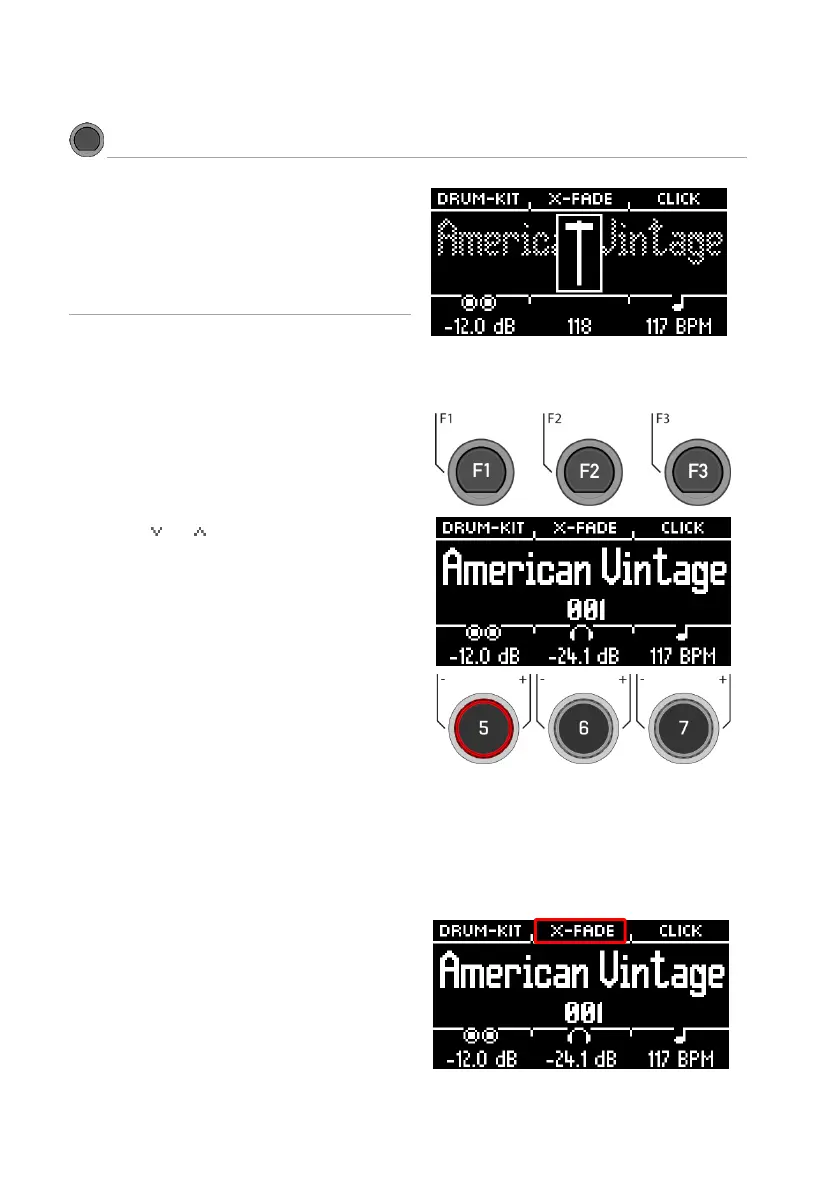 If "X-FADE" is selected, then press [F2] again to set
