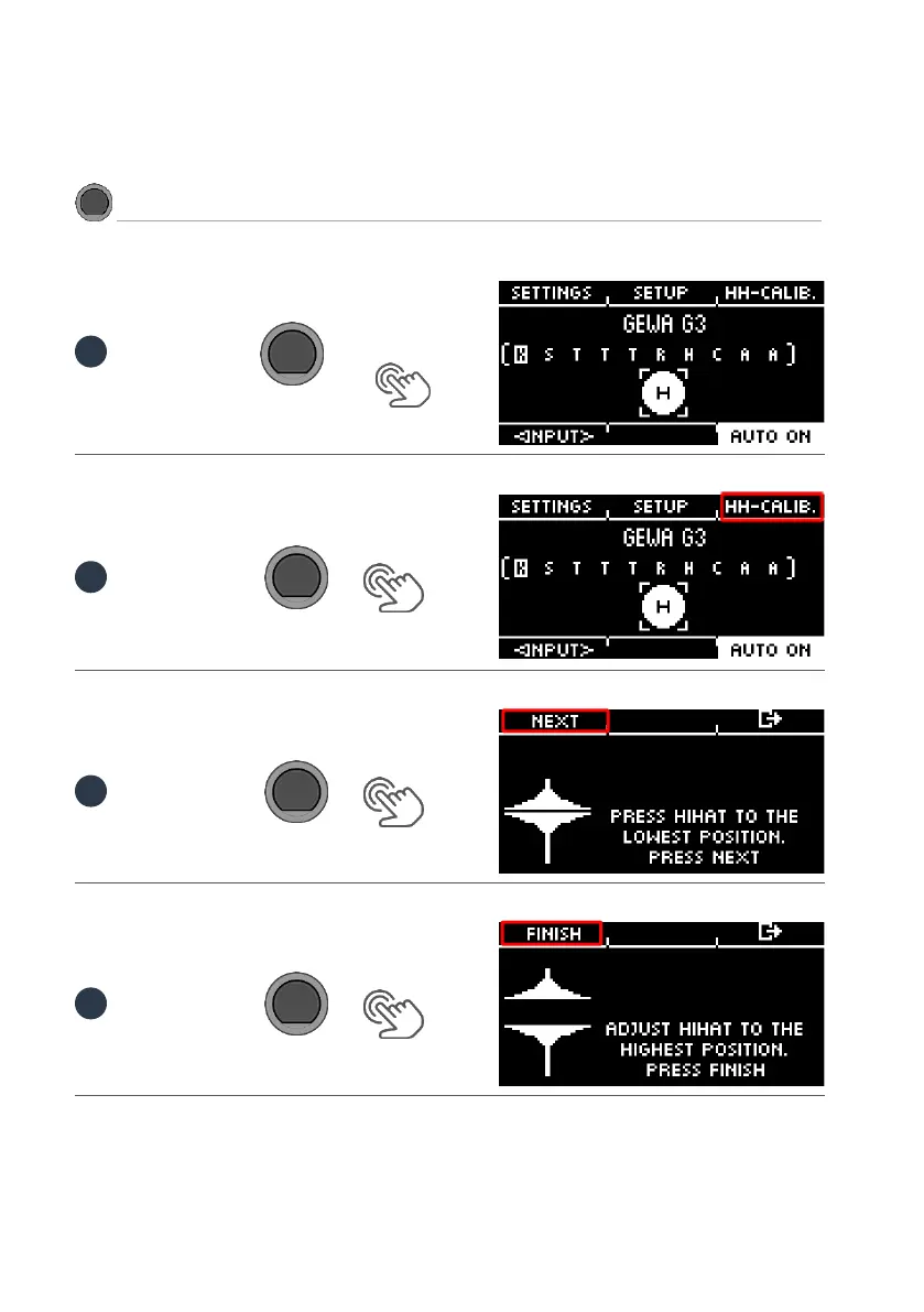 Open the Hi-Hat completely. Confirm the action by pressing the button [F1] “FINISH”.