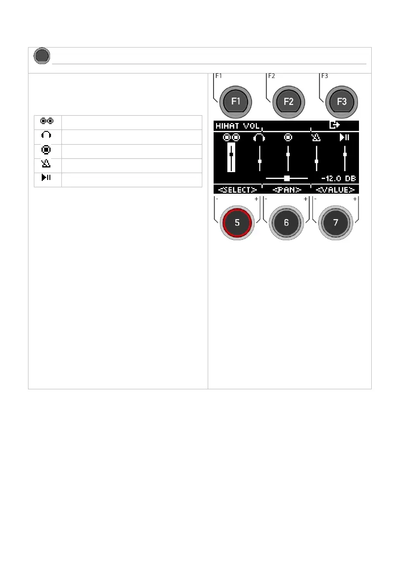Press [F1] [HIHAT VOL] to access the Hi-Hat volume control.
