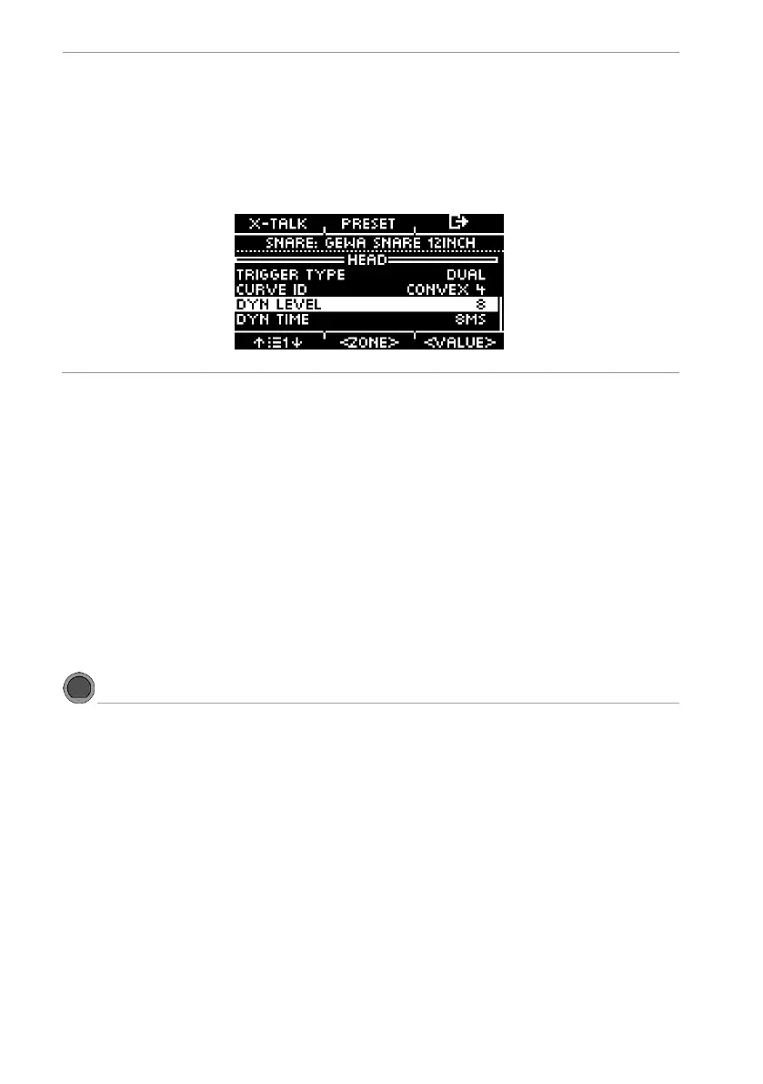 Dyn Level determines how hard the G5 tries to suppress false triggers, whereas Dyn Time deter-