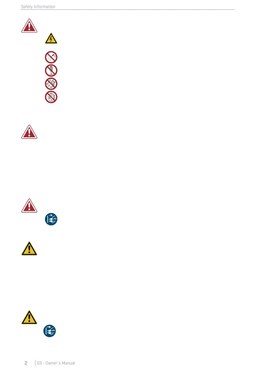 • If liquids or water accidentally get into the drum console, unplug it immediately. In all the