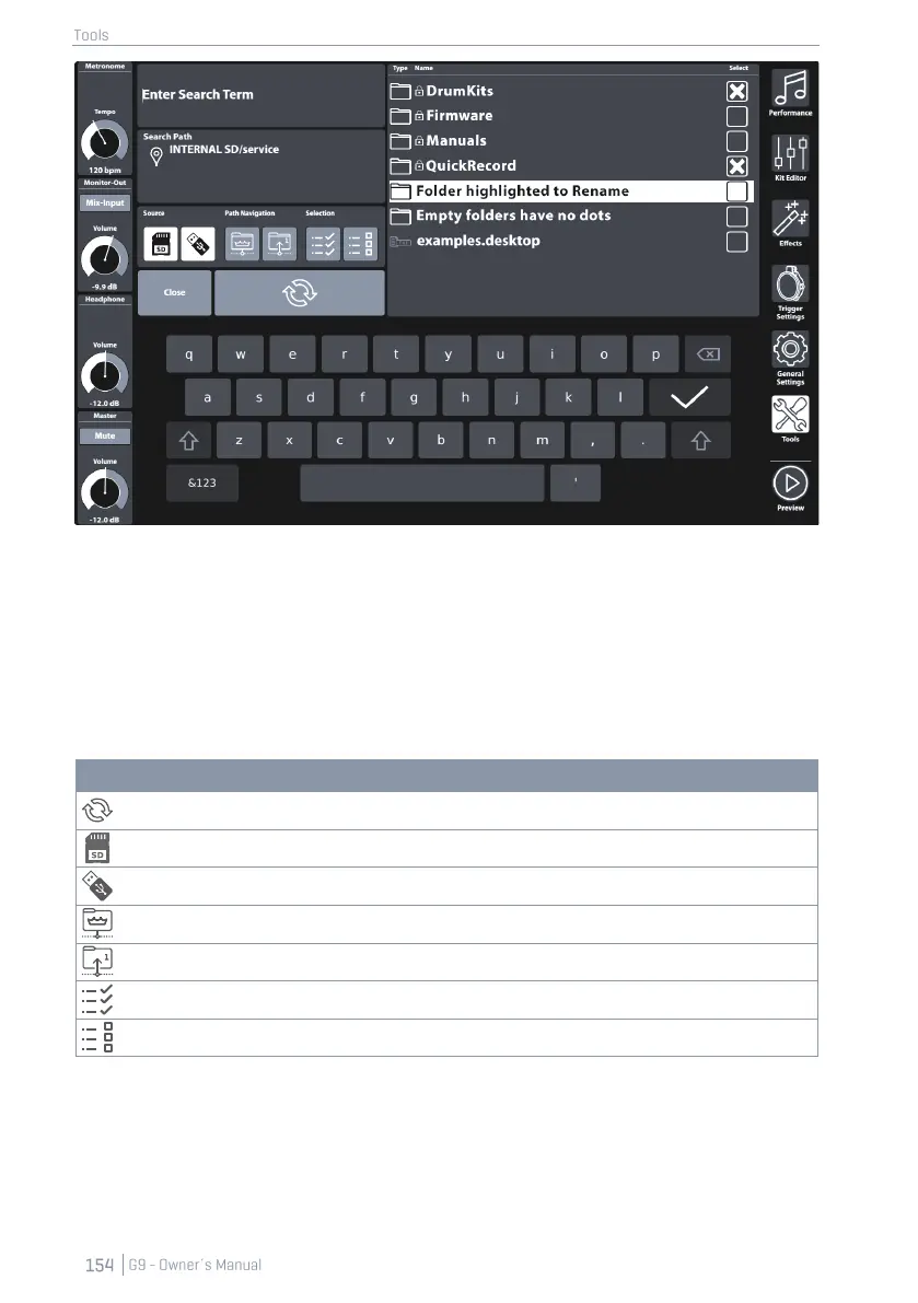 • Navigation up the path (Buttons: Root Directory, one Level up)