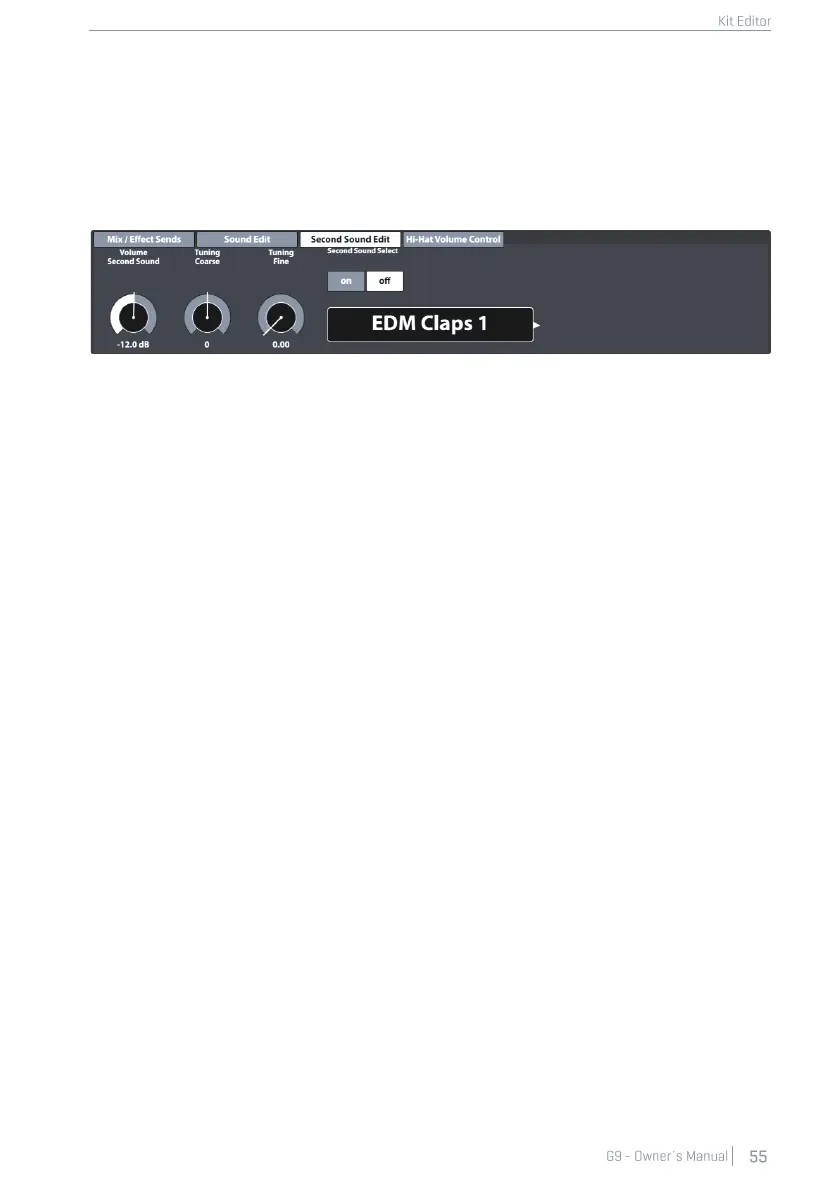 drum kit (ON/OFF). That is to say that you can determine all qualities of the second sound and turn