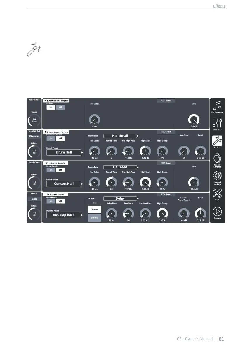 The G9 is equipped with 4 different effect modules. Ambience hosts environmental sam-