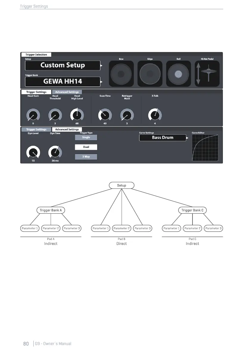 when saving a setup. The trigger bank preset field will show “Custom Setting”, whose parameter